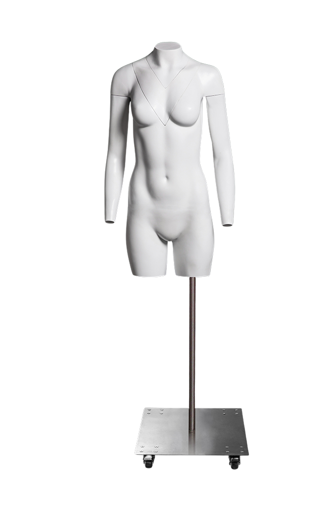 The GH18 is a 3/4 half-body female ghost mannequin bust with a V-neck design. It is suitable for ghost mannequin photography of suits, shirts, blouses, and similar womens’ clothing. The body has three V-shape cut-outs with magnetized dicing for quick combination and disassembly, and features construction of high-quality FRP material.