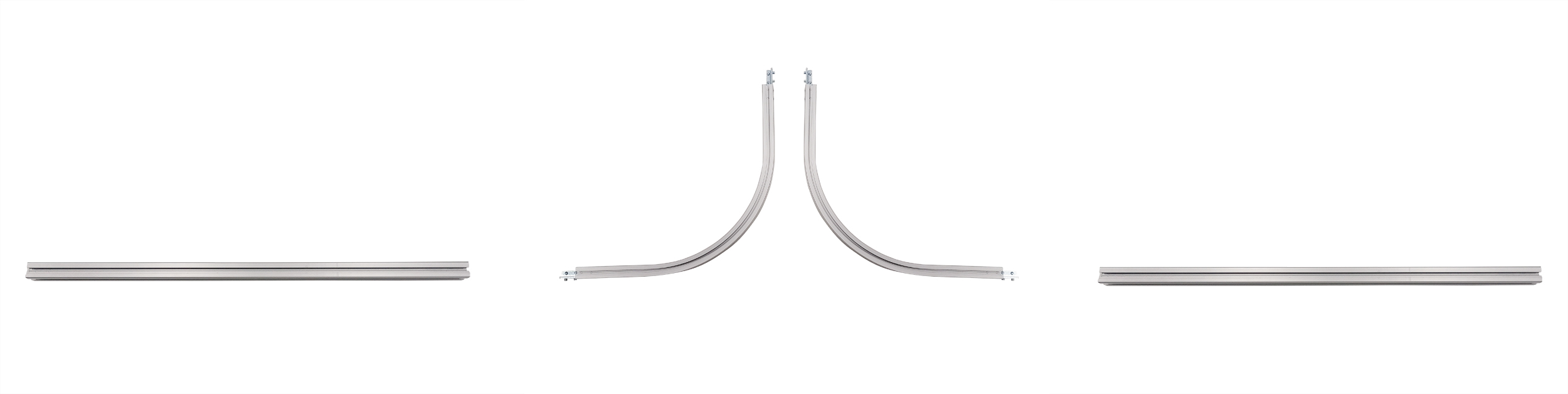 2.2.6. Retrieve the two arc aluminum profile parts (3) from the background frame diagram, and then mount couplers into each part - left and right. The couplers connect on each end of the arch in the same line.