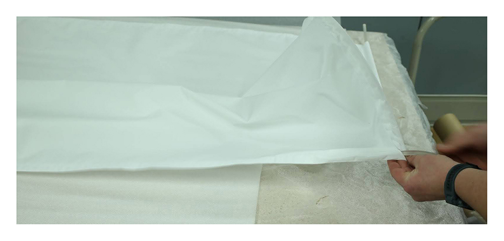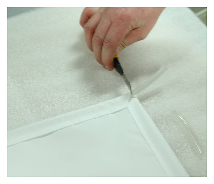 2.2.21. Repeat the process by feeding the shorter guide completely through the other side of the background, and on both longer sides as well.