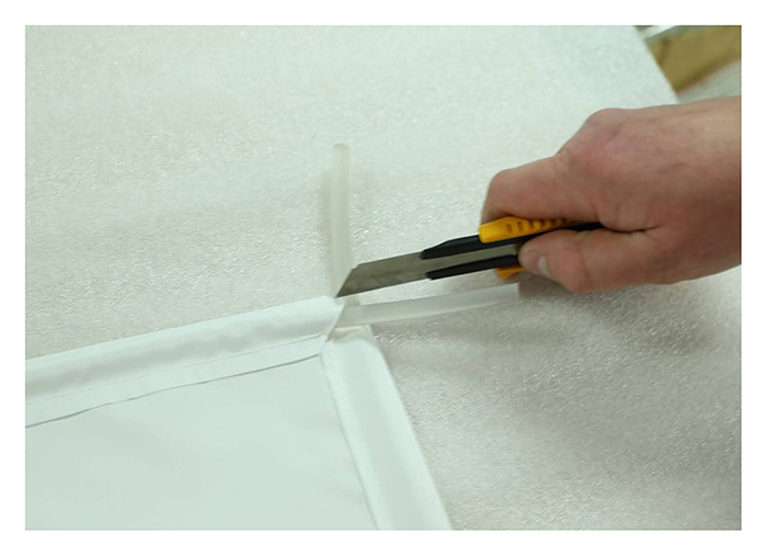 2.2.23. If the plastic guides protrude too far out of the corners, cut the guides to the appropriate length.
