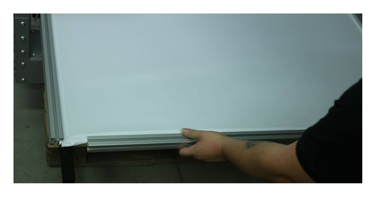 2.2.26 Next, remove the tool for feeding the white background edge into the profiles, and slide the aluminum profile (5) in the diagram onto the white background at the front edge.