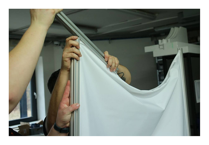 2.2.1. Assembling the white diffusion cloth background requires mounting the device to the machine frame.