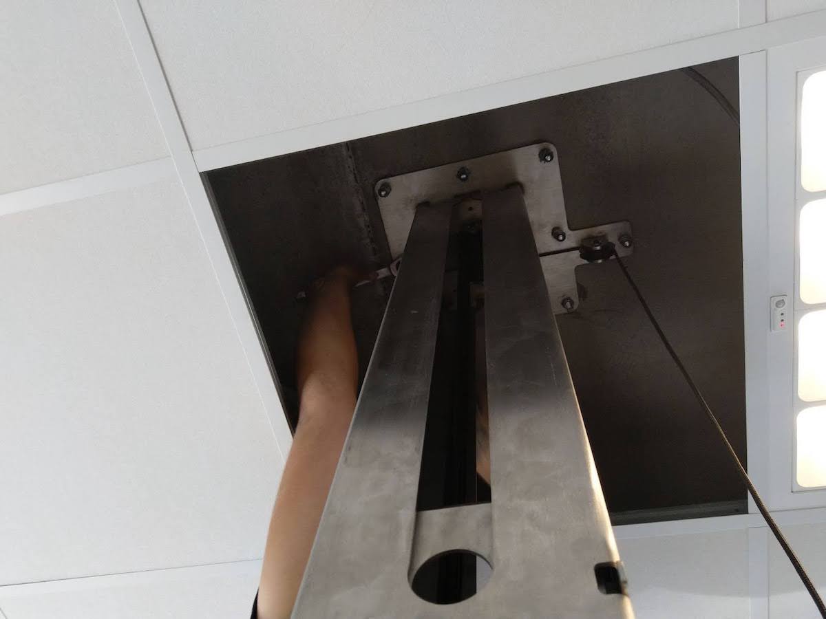 2.4.2. The telescopic pole requires a concrete ceiling, and attaches to the ceiling using 8 pieces of threaded rods. It is necessary to drill 8 holes into the ceiling, and to be precise when drilling to observe the exact spacing between holes. Prepare a chemical anchor substance in advance, using it to fill in holes and fit the threaded rod into it. Repeat this process for all 8 pieces.