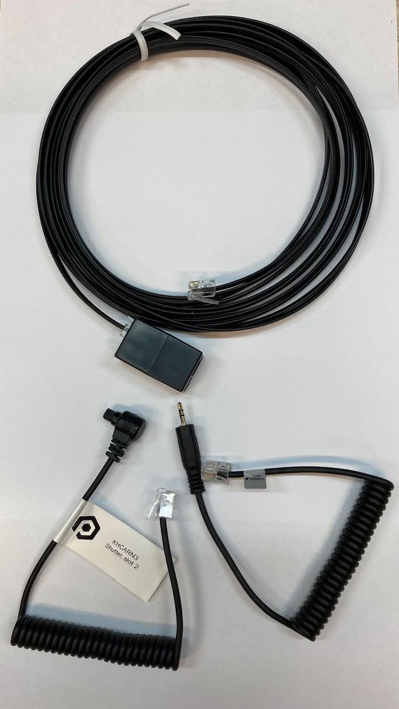 2.5.2. If preparing to use fast spin mode, connect the shutter cable (delivered optionally with the robot) to the camera on one side, and to the OUT port of the C-Class robot on the other side.
