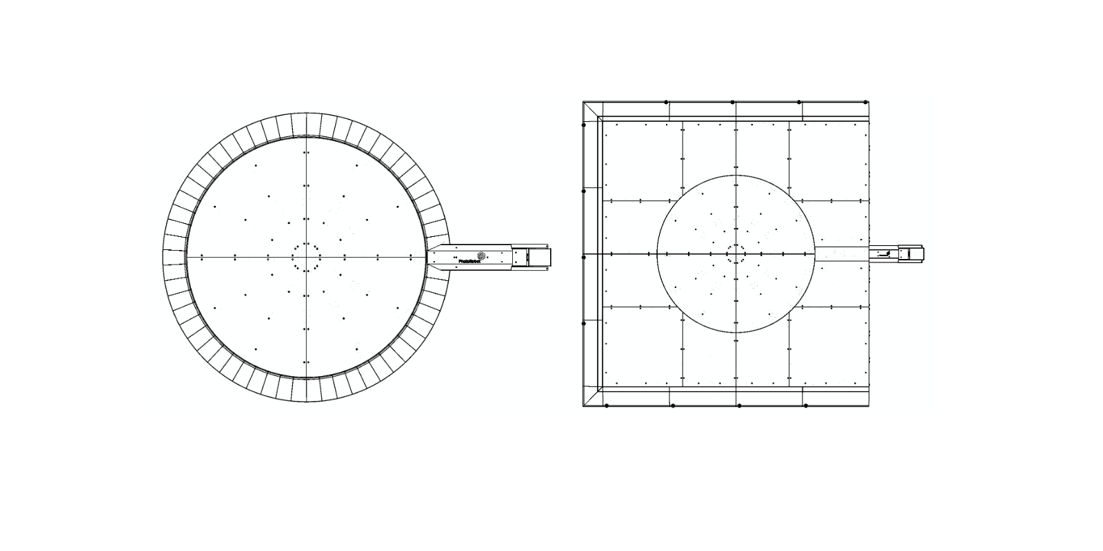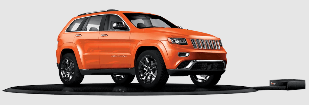 The PhotoRobot Carousel 5000 & 3000 are available in two different configurations: either in a circular shape, or in a square shape installation. Primarily, the standard configuration is the circular shape, with drive-up ramps on all sides of the platform. Alternatively, the square shaped system has drive-up ramps only on the front, left, and right sides. This allows space for a locking mechanism at the back edge of the Carousel to fix a background or cyclorama.