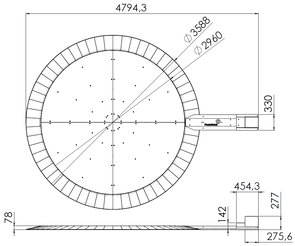 The primary difference between the Carousel 5000 and Carousel 3000 robotic photography platforms is the diameter of the two rotating plates. While the platform of the Carousel 5000 is 5 meters in diameter, the plate diameter of the Carousel 3000 is slightly smaller at 3 meters.