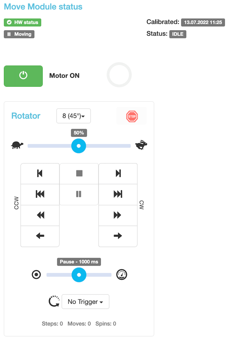 Finally, to test if PhotoRobot is fully operational, use the service GUI interface controls to turn the platform to any desired angle.