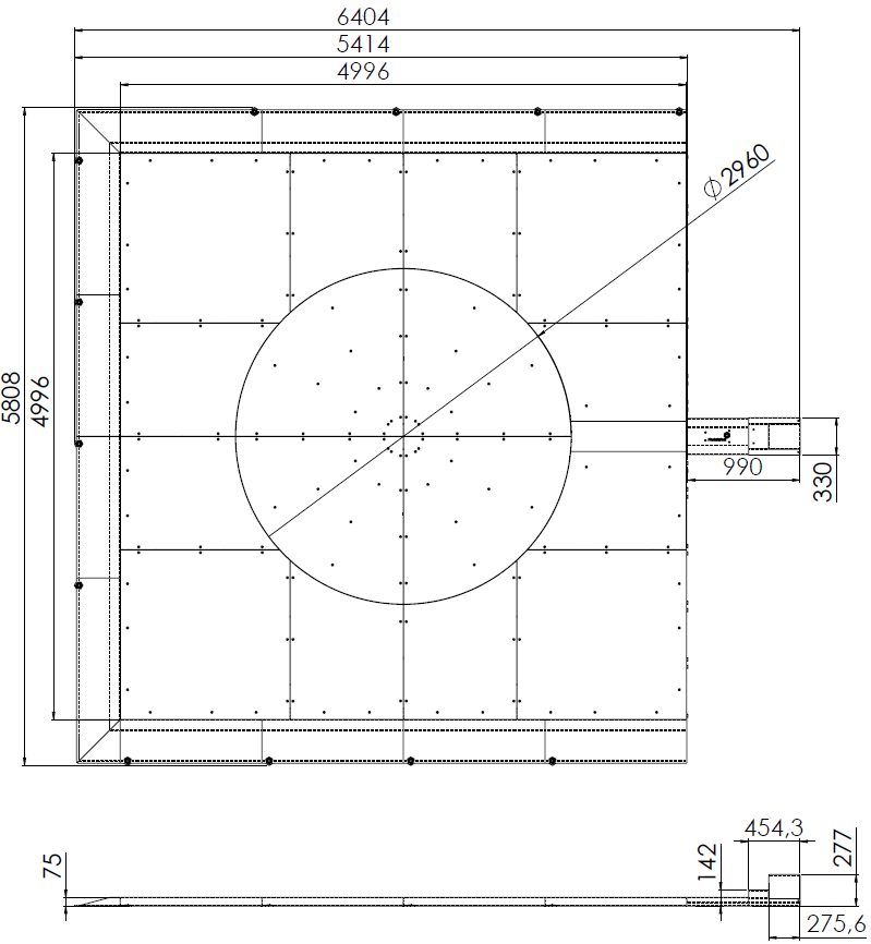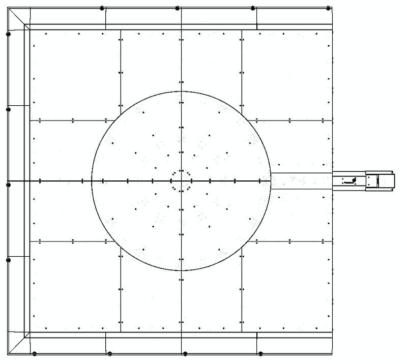 The following technical blueprints illustrate the machine dimensions of the Carousel 3000 in the square-shape configuration.