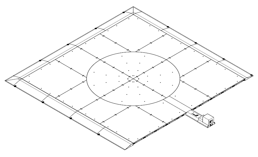 The main part of the Carpet Studio is the PhotoRobot Carousel 3000 machine in the square-shape modification with drive-up ramps on the front, left, and right sides.