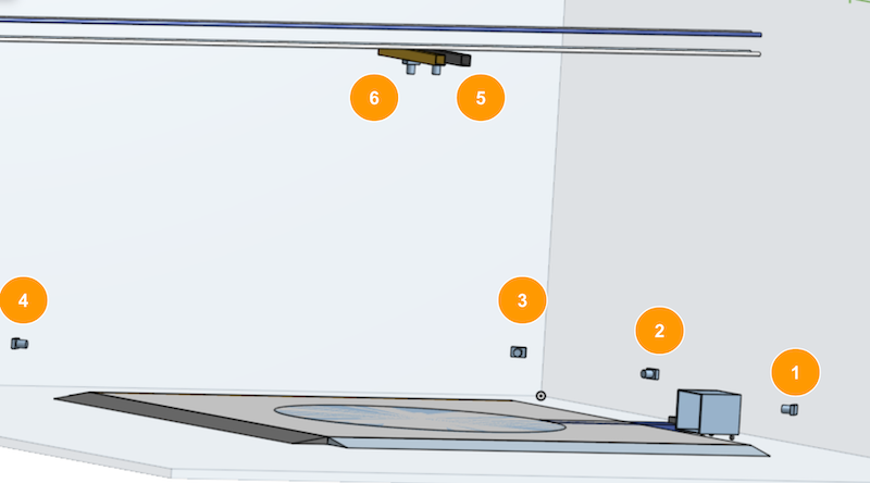 - Camera 7 (Canon EOS R6, not pictured above) is installed into the top structure into the socket on the end of the optical USB extension, hanging left or right from the top structure.