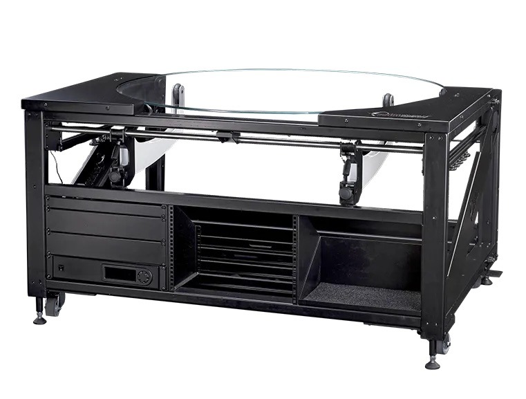 1.2.2. Both versions of the Centerless Table feature a rotating glass plate that fits into the top center of the device frame. There are then adjustable feet at the bottom of the machine for setting up a precise working plane.