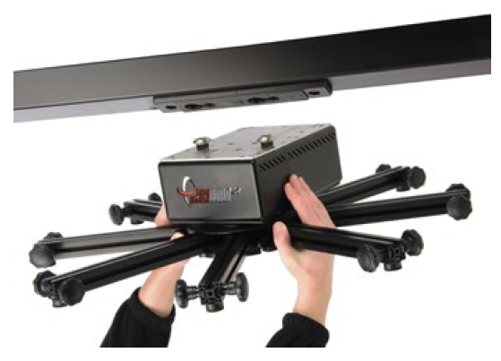 Note: In combination with the Centerless Table, the PhotoRobot Cube is mounted to a top portal in suspension mode over the turntable. This allows for suspending products in air, such as handbags, chandeliers, light fittings, and objects weighing up to 130 kg. The device synchronizes the rotation of the item, the movement of the turntable, lights, camera capture, and other robots such as the PhotoRobot Robotic Arm.