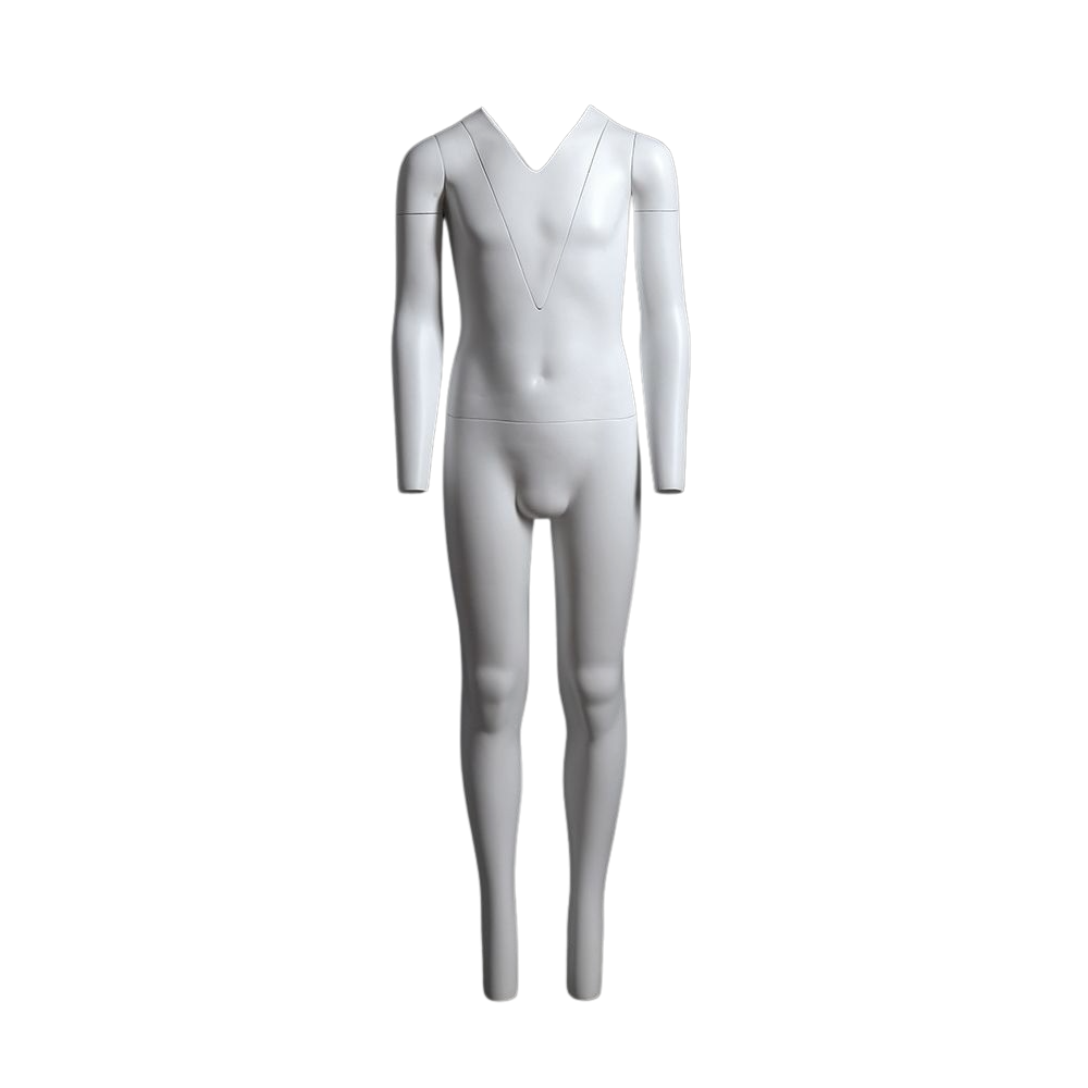 The GHK112 full body child invisible ghost mannequin supports photography of childrens’ clothing and fashion items. With the appearance of a 12-year old child, it is suitable for photographing both boys’ and girls’ fashion. The mannequin features removable chest, neck, and arm pieces to easily photograph different styles and cuts of clothing.