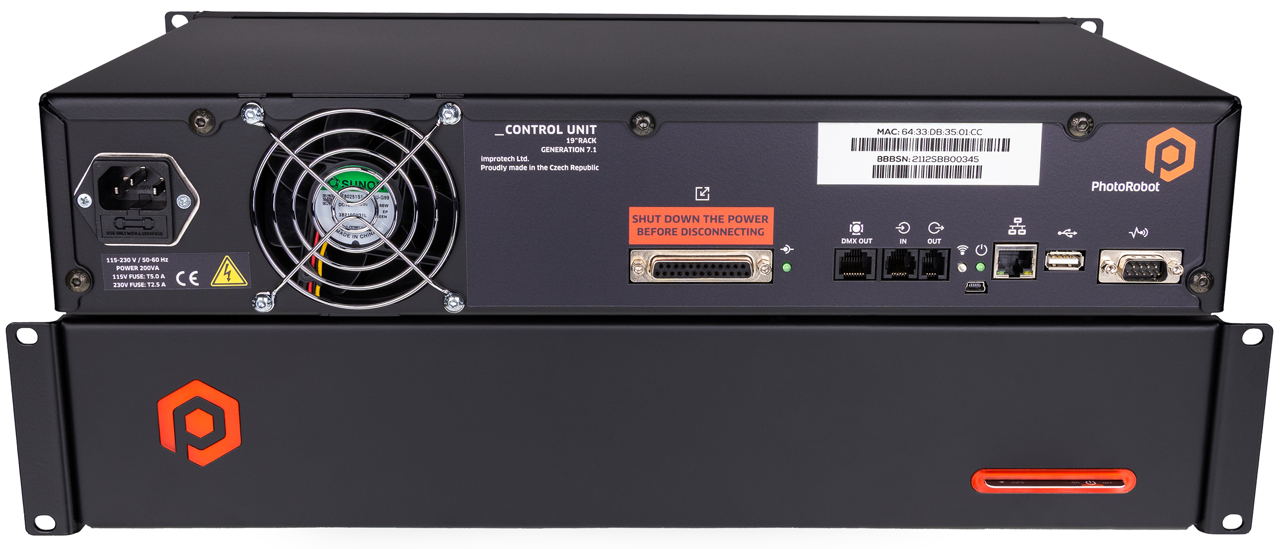 Control systems older than generation 6 no longer meet modern architectural and safety standards. The newer control units are fully backward compatible, so it is not a problem to easily upgrade a PhotoRobot over 10 years old to achieve the highest performance and the latest parameters by simply replacing the control system. New external control units in a 19" rack format (2U) are connected via cables – immediately after connection, the Robot can perform the most advanced functions.