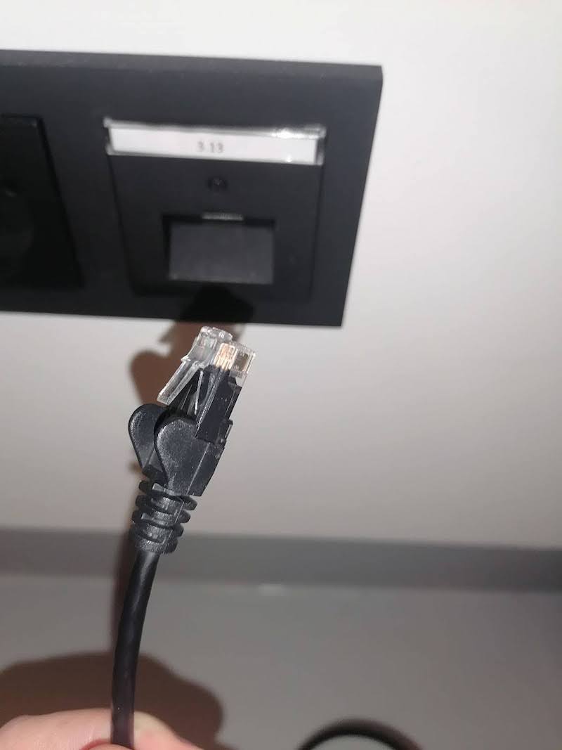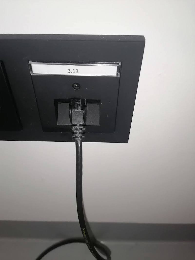 3.2.5. Using the longest ethernet cable, plug the cable into the data wall socket of your studio. Please note that by default it is expected internet access will be available through this data wall socket, and therefore the IP address will be obtained automatically.