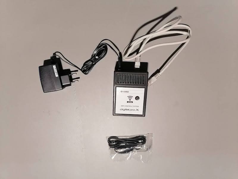 3.2.10. Next, if using Fomei strobes, unpack the Fomei Wi-Fi converter and power adapter, and connect the devices. If using Broncolor lights, refer to PhotoRobot - Broncolor Lights Management.