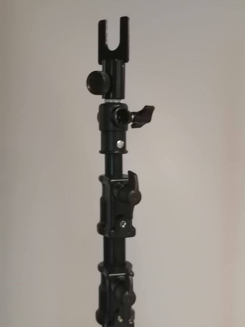 3.5.7. Note that if a boom stand is installed as in the recommended lights setup, it will be necessary to first construct the boom stand. To build a boom stand, you will need a tripod, a 1.5 meter wall boom pole, and a wall boom set.