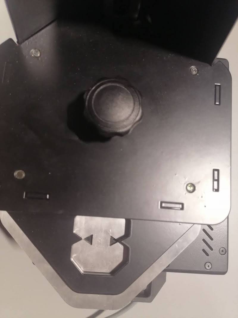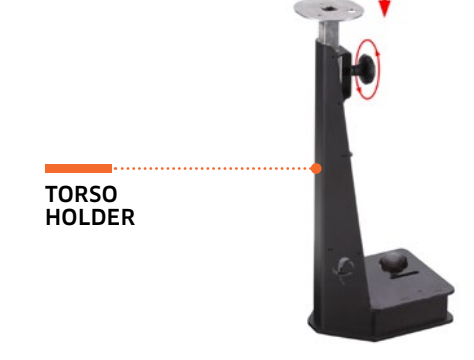 3.4.5. Position the body of the torso holder onto the reduction plate, and secure the torso holder into place using the large hand screw.