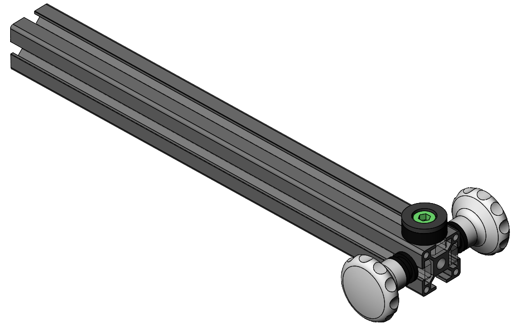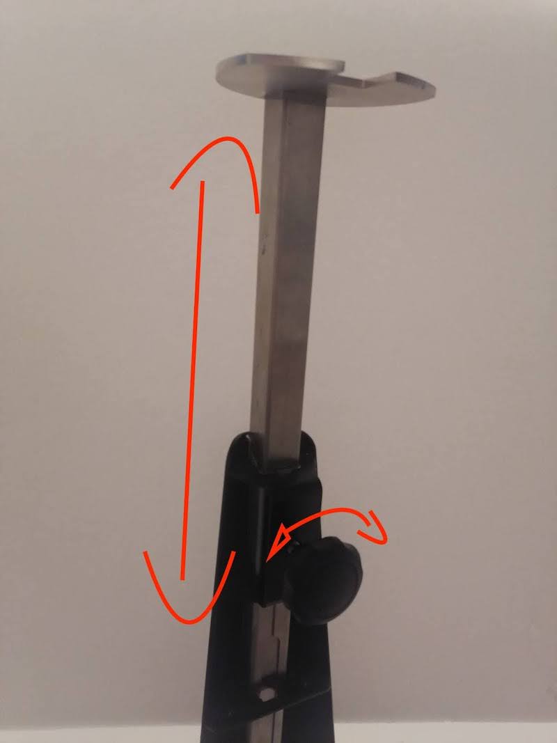 3.4.6. At this point, note that the height of the torso is adjustable by loosening and tightening the hand screw, and sliding the extension higher or lower.