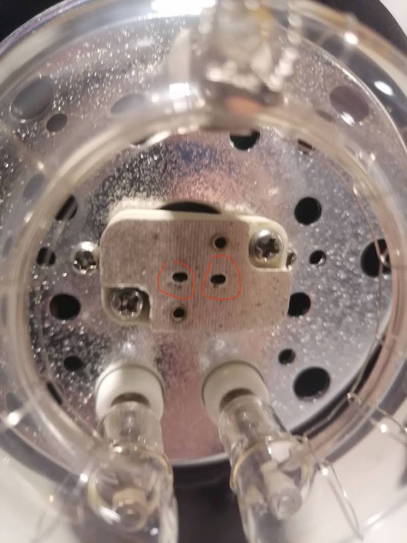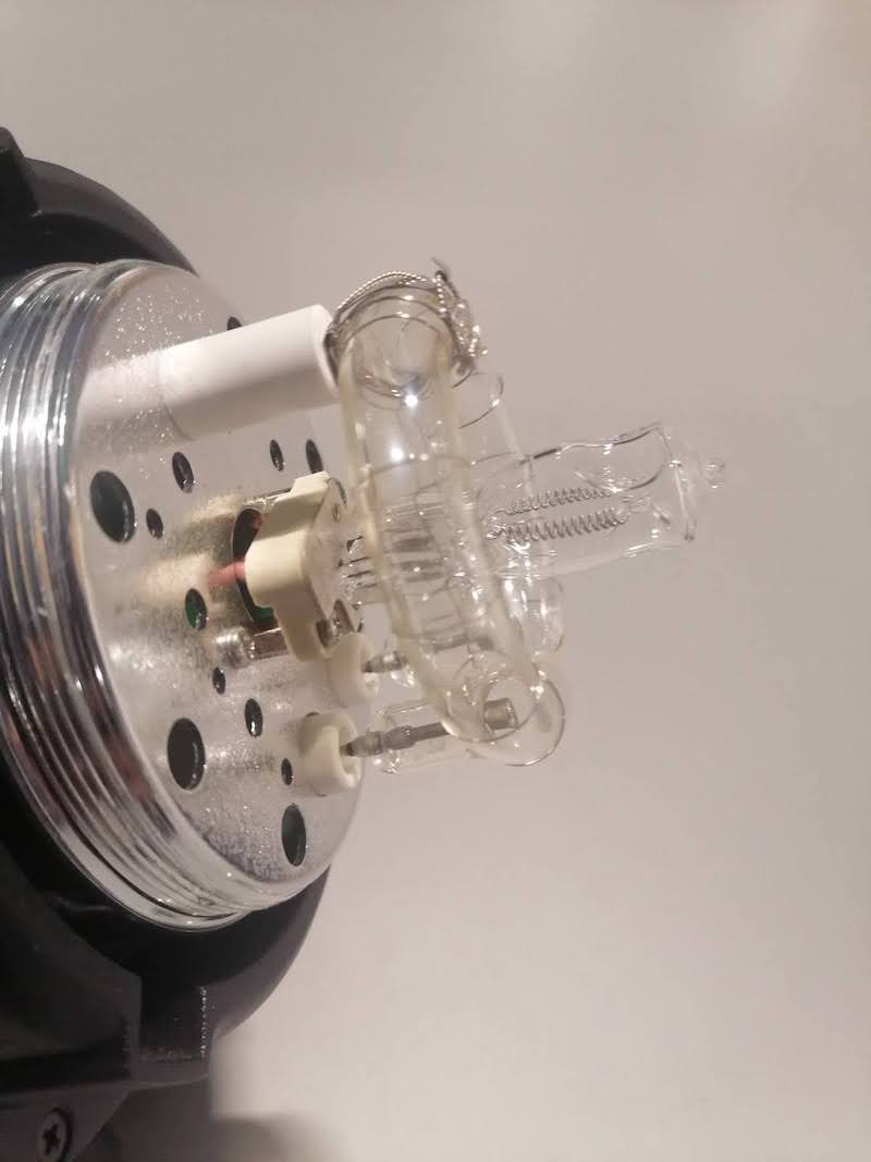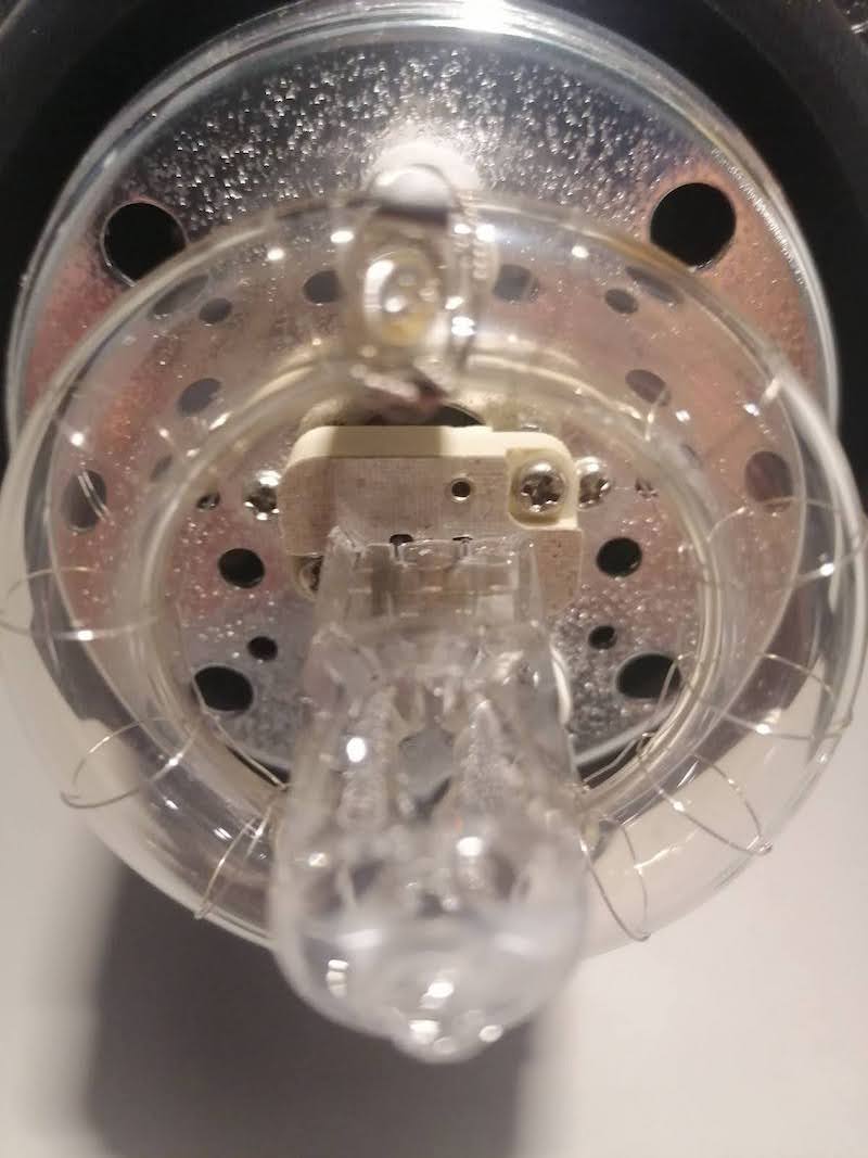 Note: To insert the pilot bulb, carefully unscrew the glass from the main. Then, do the same for the glass protector from the main bulb, before taking out the pilot bulb from the carton box. Be sure to use a napkin or cloth when handling the pilot bulb, otherwise its lifetime may drastically lower. Next, insert the pilot bulb into the connection at the exact position as in the following photos.