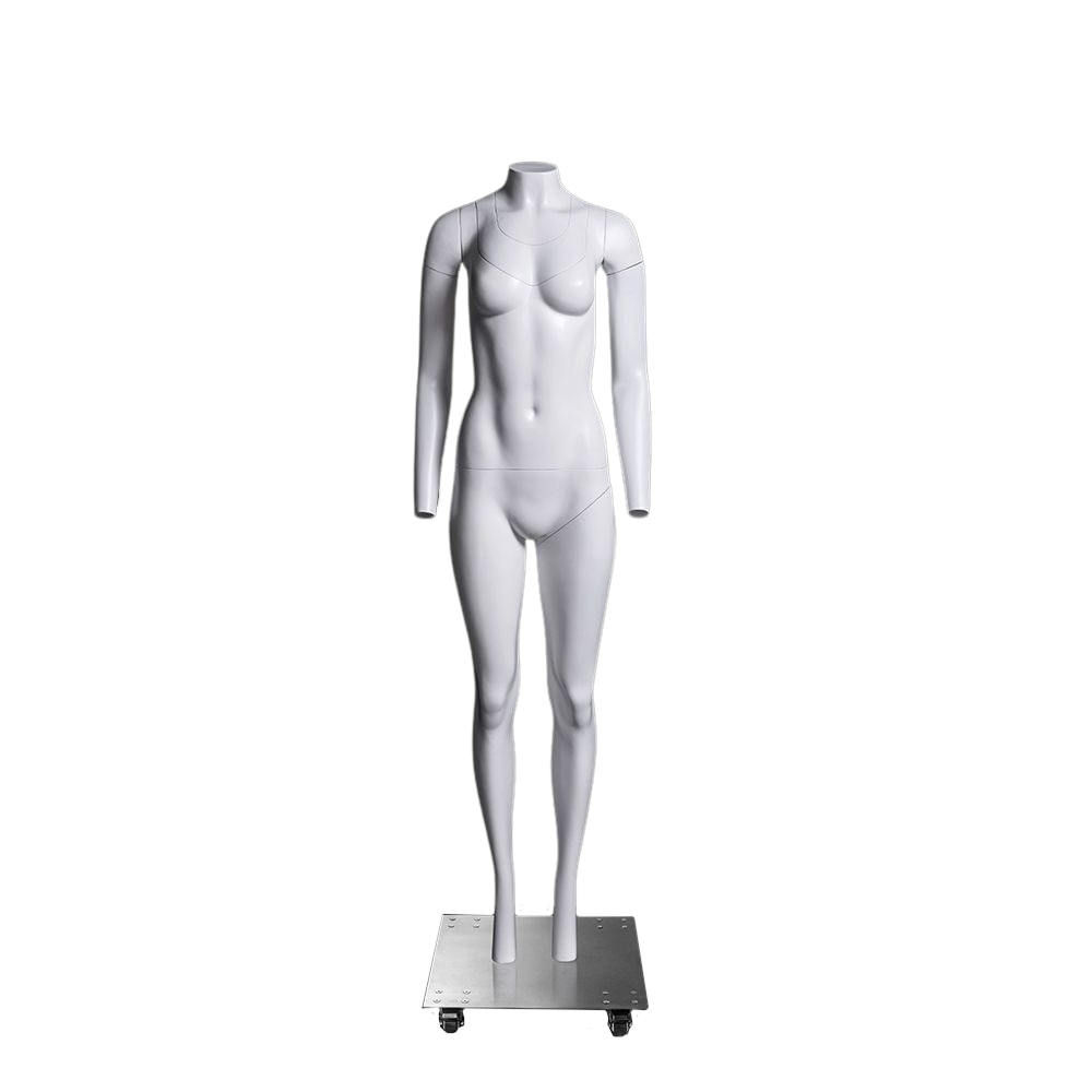 The GH12S female invisible ghost mannequin is a variation of the GH11S model, featuring instead removable U-cut neck pieces. This design aims to easily facilitate the ghost mannequin effect on more casual clothing, like U-cut t-shirts and blouses. The mannequin also has detachable shoulder and arm pieces to support different length sleeves, while the torso and legs are also fully detachable.