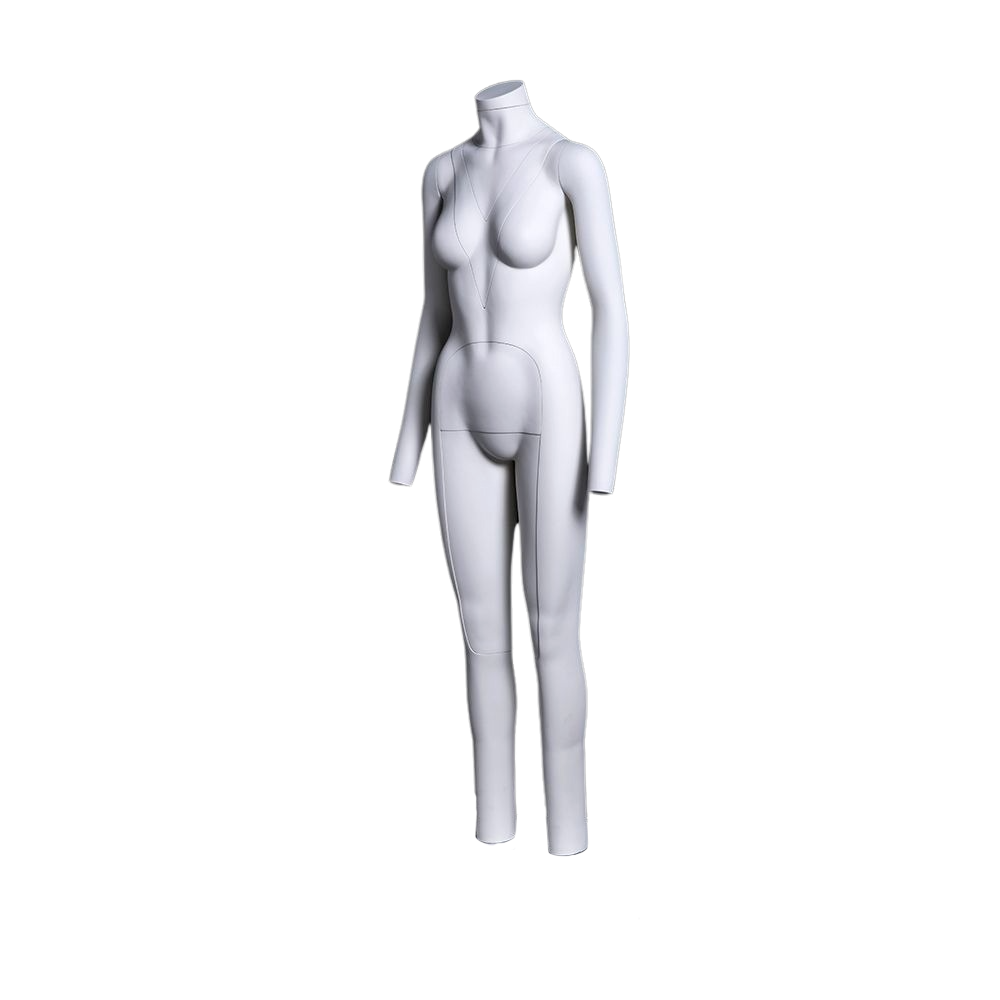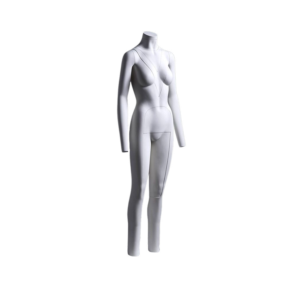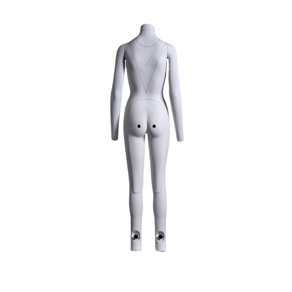 The GH21 full-body female invisible ghost mannequin is a shorter model by standard American and European sizes. This provides more versatility for females’ clothing photography of different designs, shapes, types, and cuts. The mannequin torso and legs feature a variety of cut-out body parts to easily create the invisible ghost mannequin effect. It facilitates fashion items such as blouses, skirts, long-sleeve garments, jeans, and other clothes.