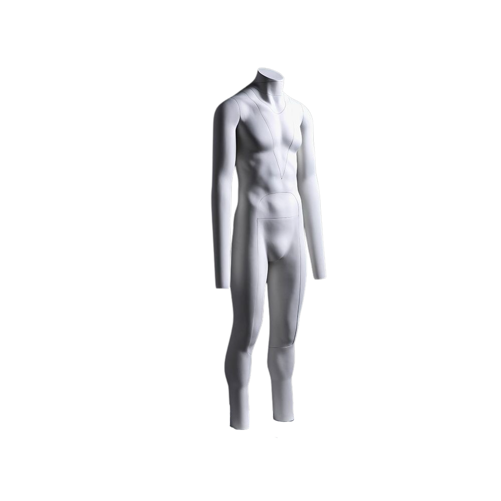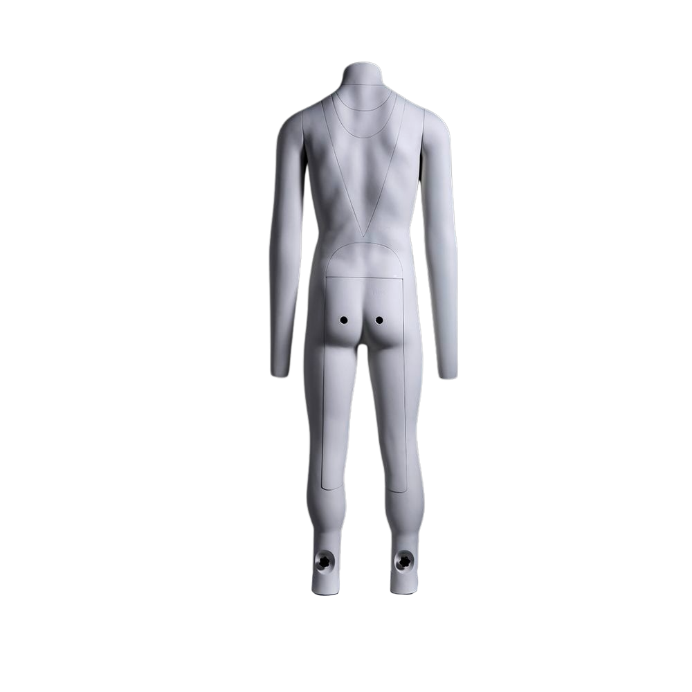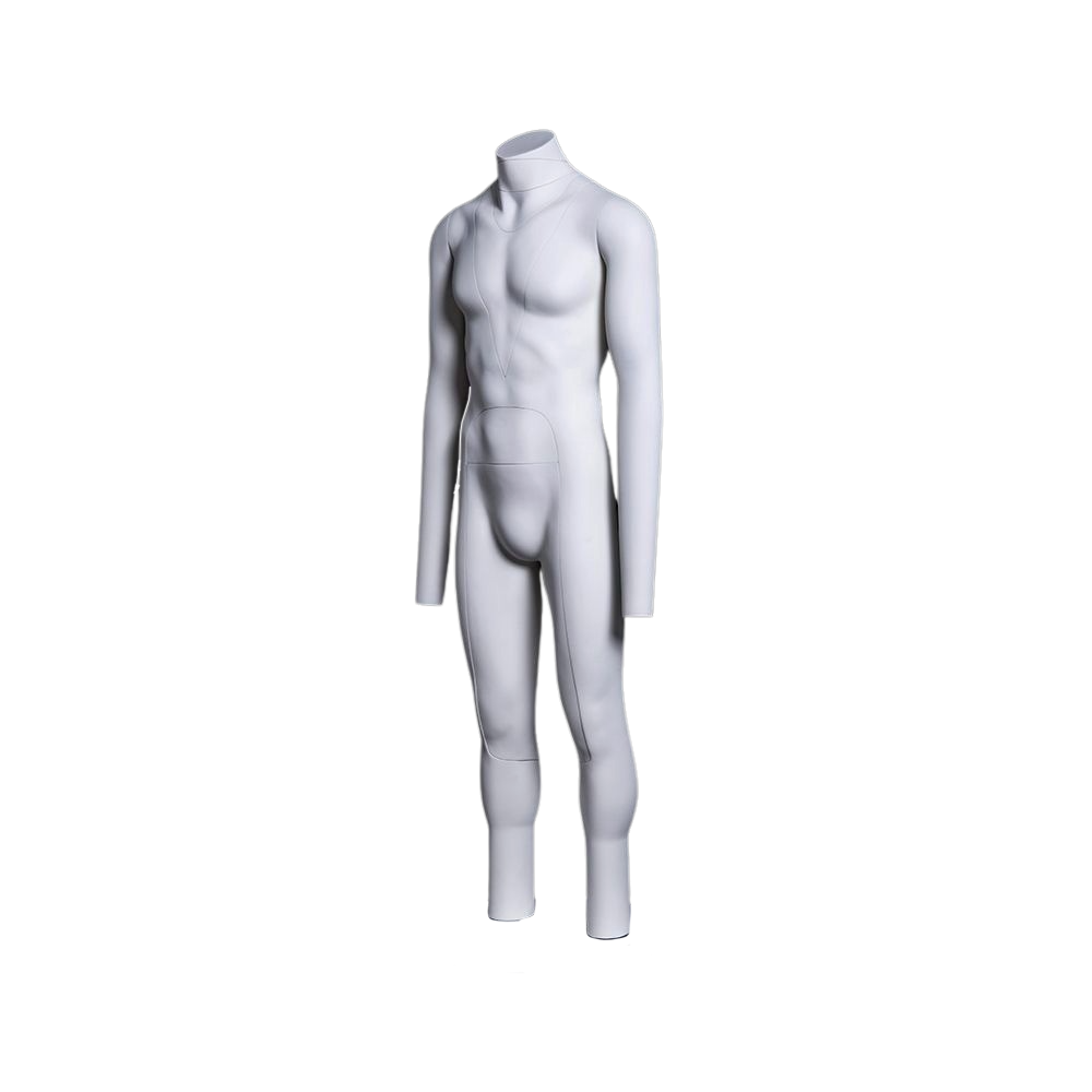 The GH23 full-body male invisible ghost mannequin is a shorter model by standard American and European sizes. Its design supports various types, sizes, and cuts of clothing, and features removable neck, chest, arm, and leg pieces. A rotating base on wheels also makes it easy to transport the mannequin around the studio, and to quickly capture any angles.