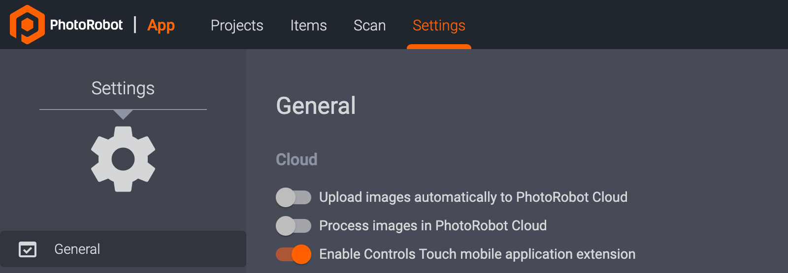 If using the PhotoRobot Touch Mobile Application for iPhone, toggle on Enable Controls Touch Mobile Application Extension.