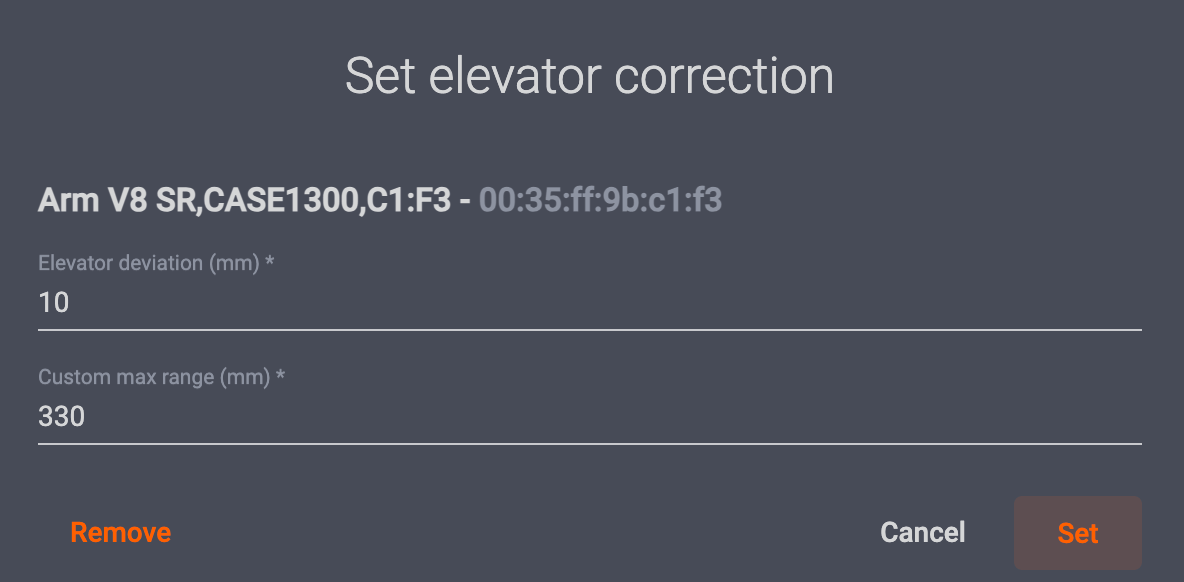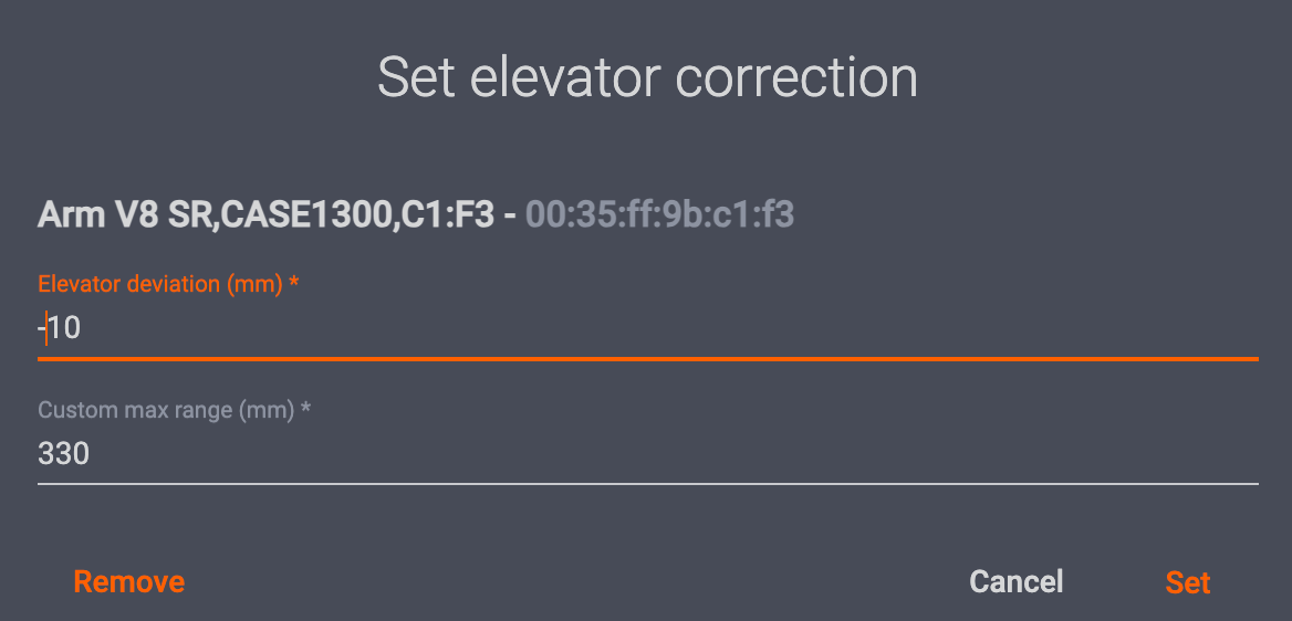 Next, select the menu option Set corrections to open the Set elevator correction function: