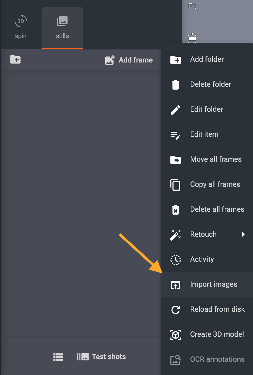Before taking final images, it is a good idea to take one or more test shots. The easiest way to do this is by pressing the T key on your computer keyboard. This will help you check whether you should change the settings of your lights, camera, etc. Test images are stored in the “test shot” folder, which you can access in the bottom left part of the screen.