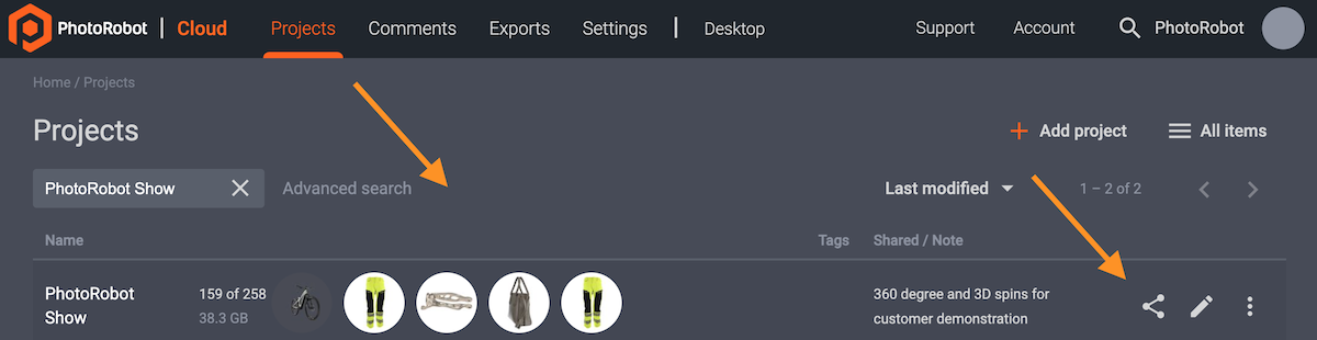 If using PhotoRobot Cloud hosting, files can also be found in the PhotoRobot cloud storage. To access these, click Open in the cloud in the Photos section at the top-left part of the screen.
