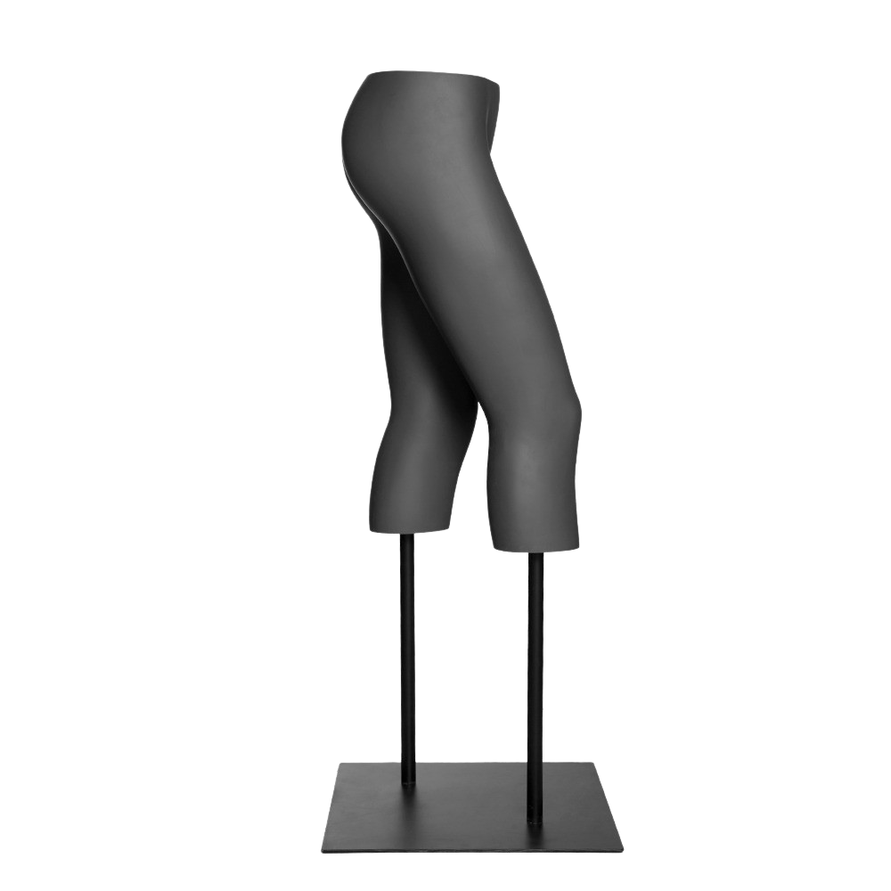 The TM11 model is a female half-body leg form ghost mannequin for photography of womens’ trousers, shorts, dresses and similar. Its construction is an eco-friendly FRP material that is strong, drop resistant, and scratch-proof. The mannequin also features a matte black finish to reduce glares, and make it easier to retouch photos for the ghost mannequin effect.