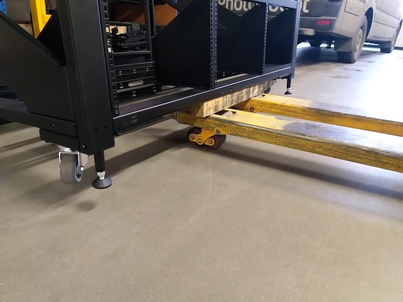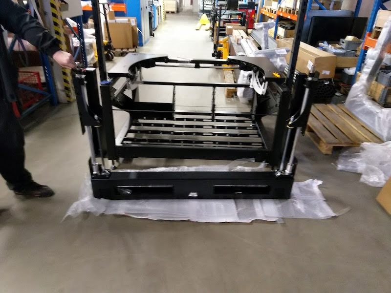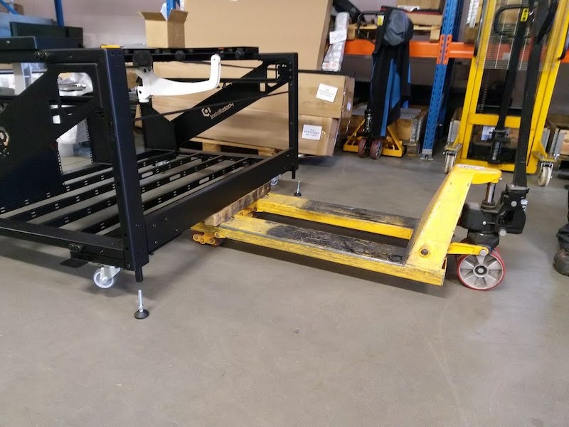2.1.4. Use a forklift or similar lifting device to lift the CL1300 / CL850 above the ground high enough and screw in the 4 feet upside down into position. Screw each foot x 4 in tightly and as far up into the machine frame as possible.
