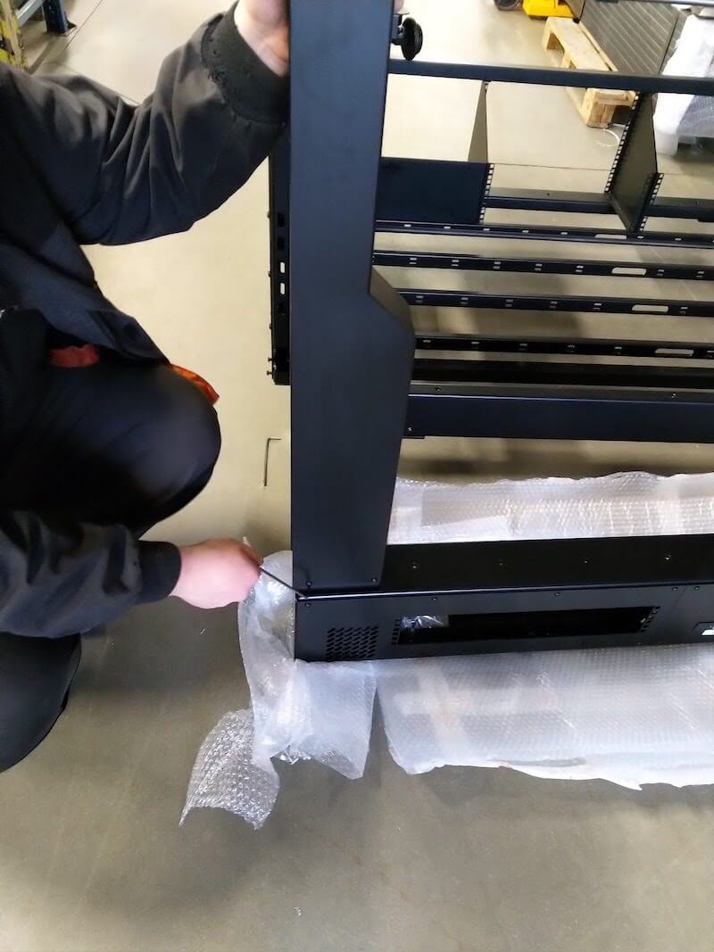 2.3.2. Unpack the MultiCam Portal, and remove the covers to the trapezoidal rod covers on both sides of the portal.
