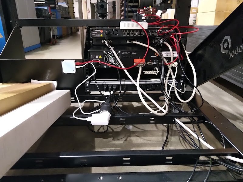 6.2.3. Fasten both lasers and connect them to the black simple USB extenders which are already in place.