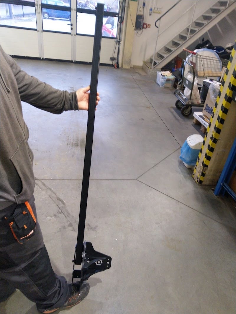 6.3.2. Next, insert the rods for mounting the flash lights, minding the logo orientation and replacing the safety screw afterwards.