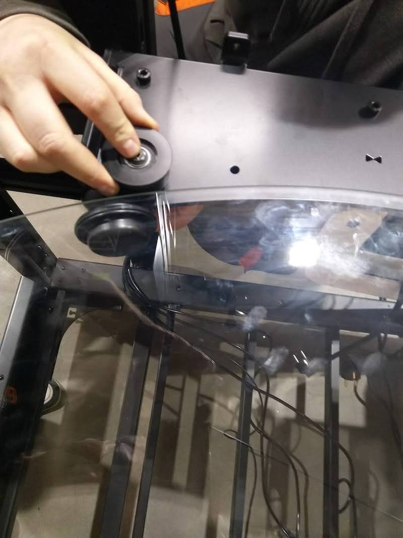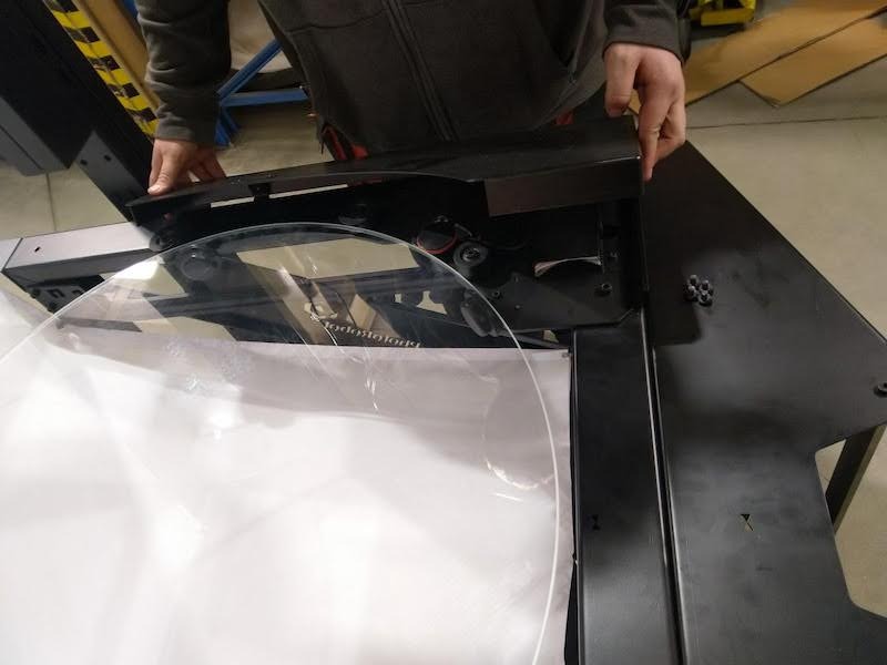 7.6. Place back the two upper covers of the glass plate guide wheels and tighten their screws.