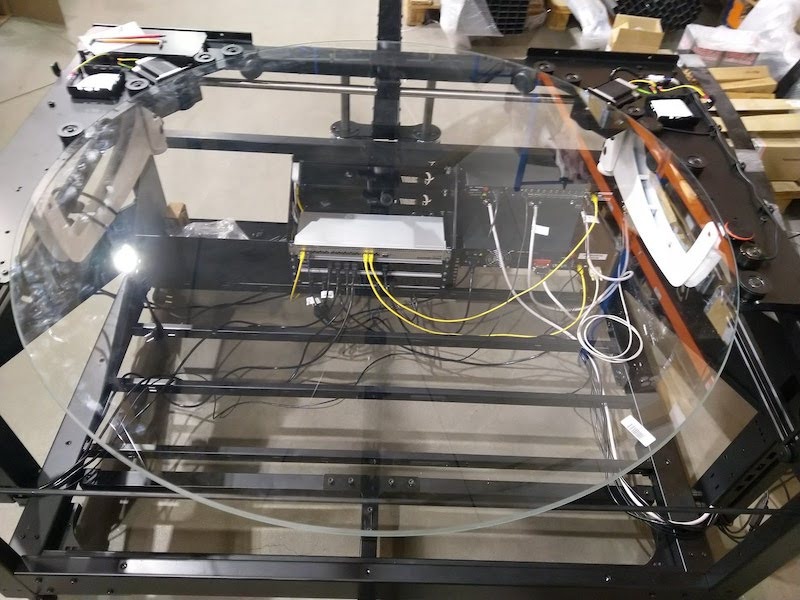 7.3. Carefully place the glass plate onto the supportive wheels, ensuring that the notch on the glass plate faces down.