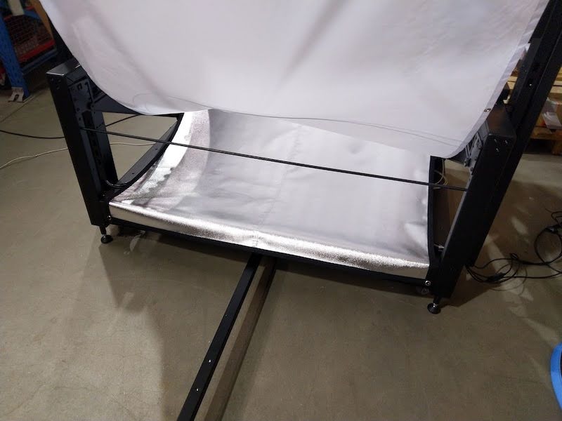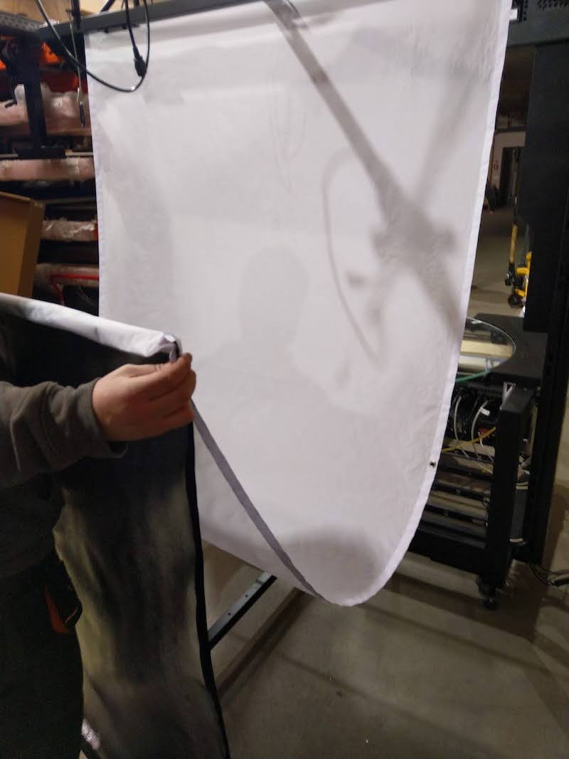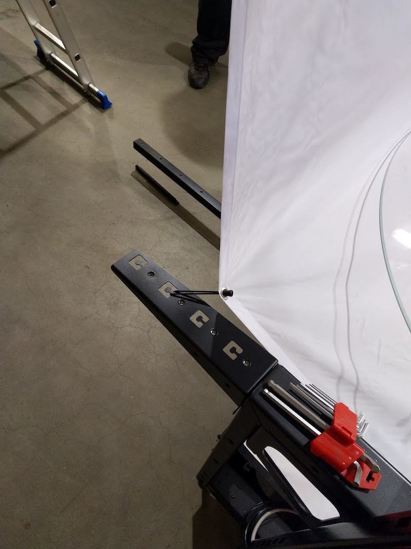 8.4. Move the white background to the final position, and secure it using the rubber clips.