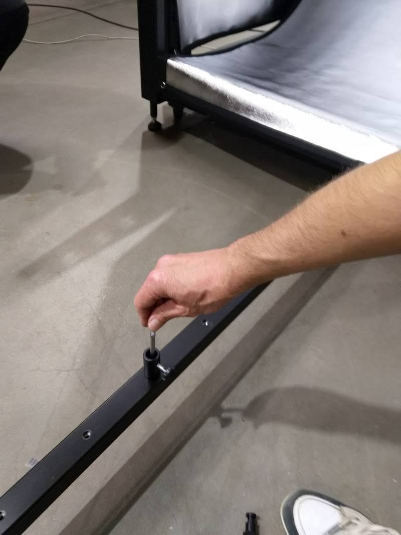 8.8. Insert 2 x pins into the background holder console, and screw the pins in place.