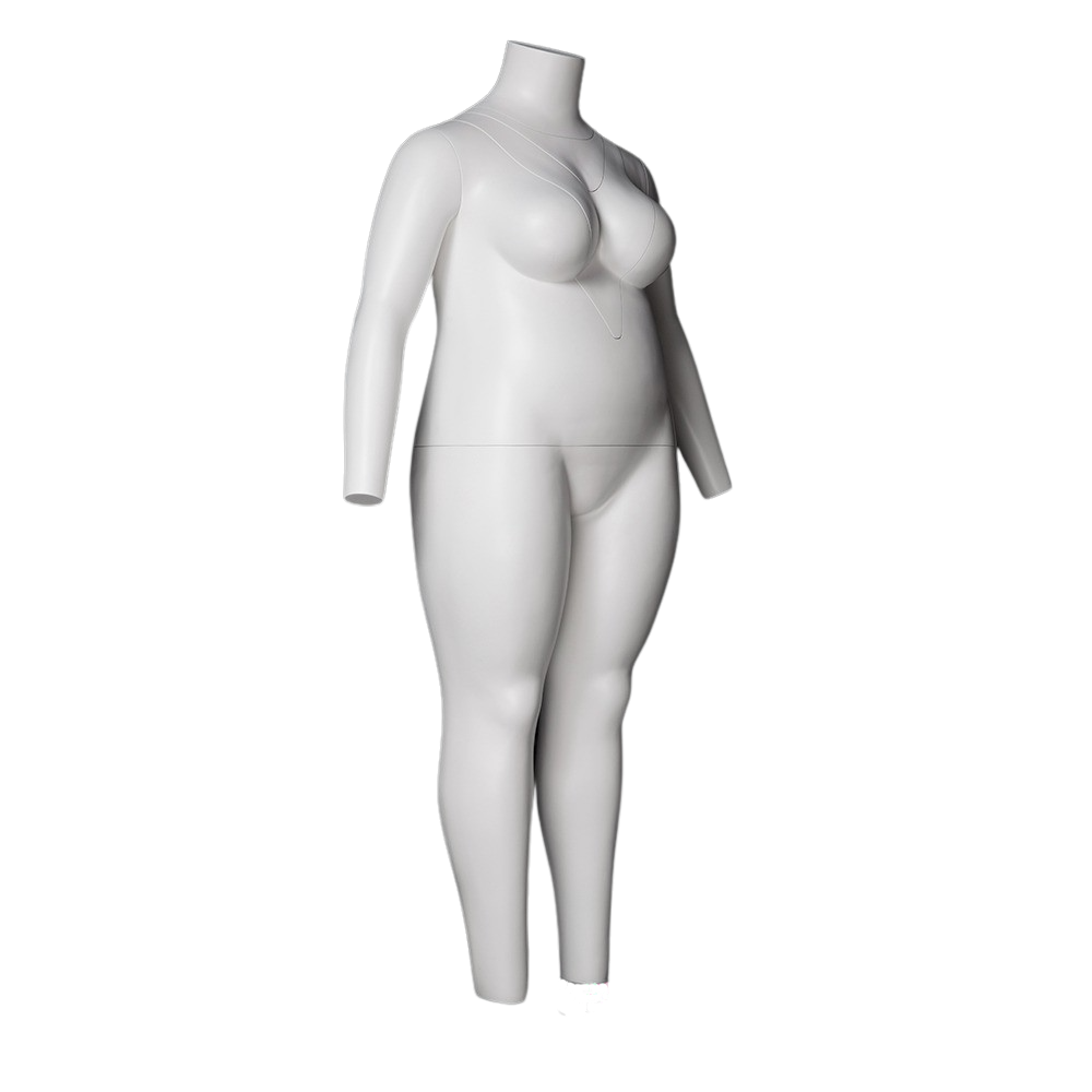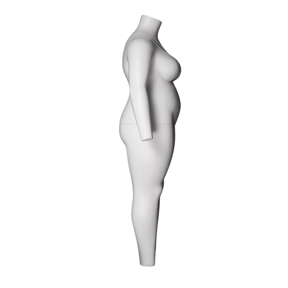 The GH11-PLUS invisible ghost mannequin female is a full-body model for larger European-standard size clothing. Its body features detachable parts for different cuts of women’s clothing, suitable for full outfits, dresses, jeans, and more.