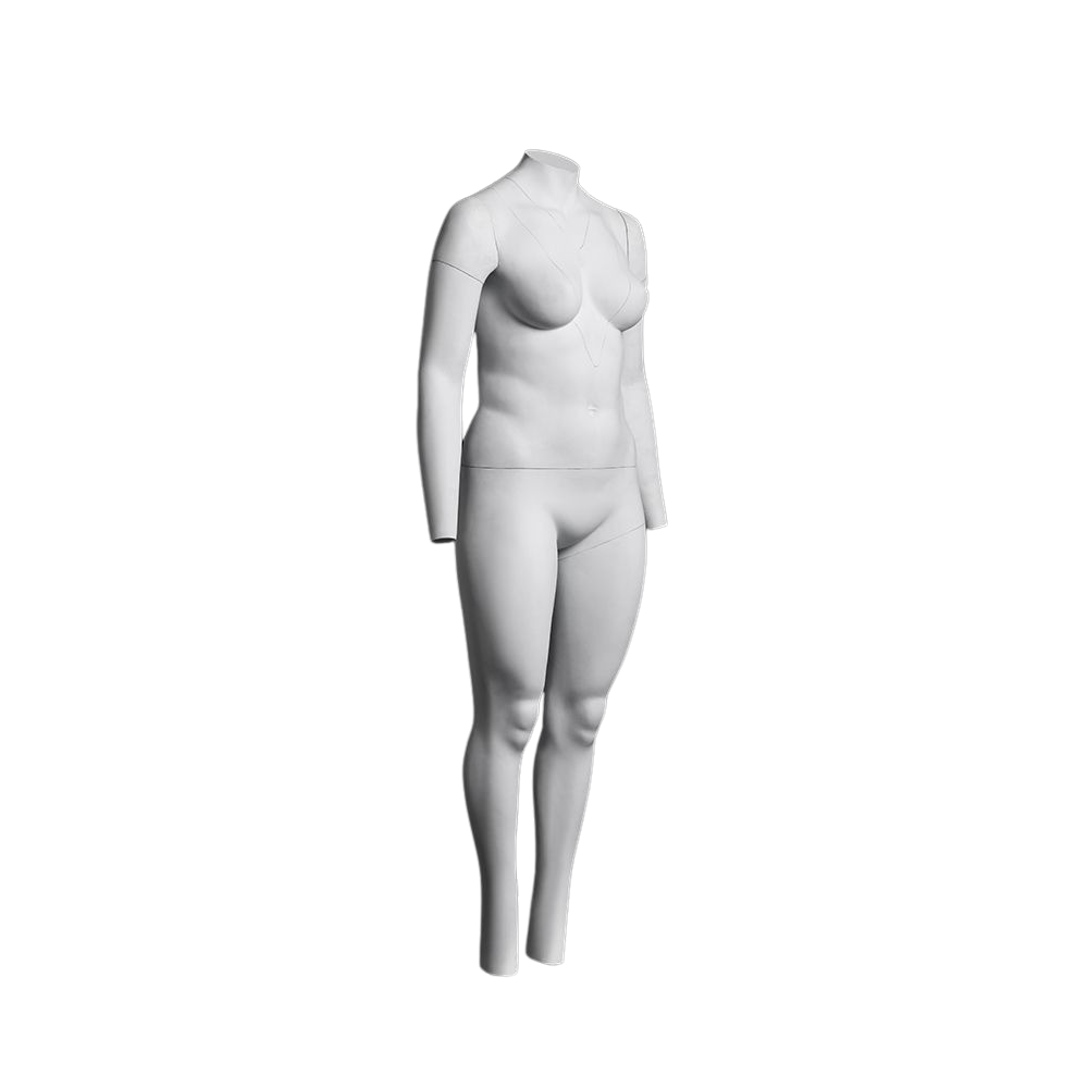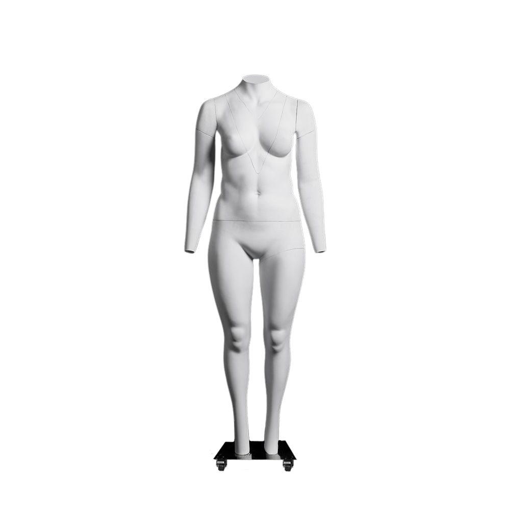 It takes only moments to make a mannequin invisible in photos, and to produce eye-catching, true-to-life 3D clothing photography. The female mannequin is plus-size by standard European sizes, and facilitates the photography of a wide range of women's clothing and fashion items. That includes photography of women’s suits, dresses, blouses, leggings, jeans, and more. Simply style the mannequin and remove its separable pieces to give clothing a full-bodied appearance, as if an invisible person is modeling the items.
