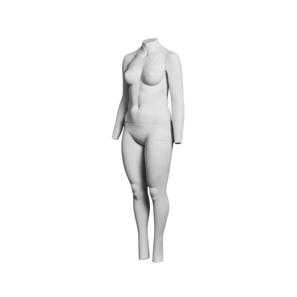 The GH14 invisible ghost mannequin female is a European, plus-size model for women's fashion and clothing photography. It has removable neck, chest, shoulder, arm, and leg pieces, with magnetized dicing for easy combination and disassembly. The mannequin features construction of high-quality FRP material, and a matte-white finish that eliminates glares and reflections during photography. These ensure much faster workflows in the studio, from styling mannequins to the single-click capture and post-production of PhotoRobot.