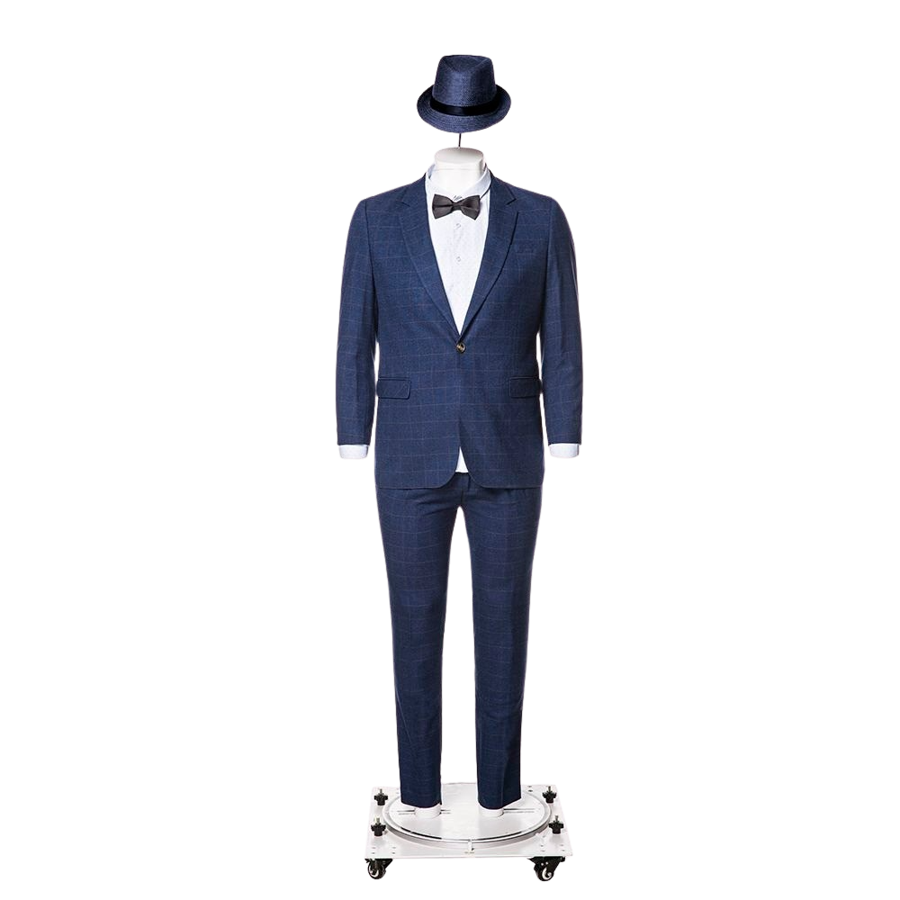 The GH25 full-body male invisible ghost mannequin is a plus-size mannequin with a rotating base for in-house fashion photography. Its body supports standard American and European plus-size menswear and clothing. Meanwhile, multiple removable pieces make it easy to style various sizes, types, and cuts of clothing on the mannequin. This helps to remove the mannequin in product photos, and to enable the automated capture and post-production of PhotoRobot.