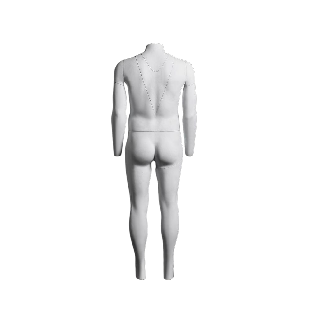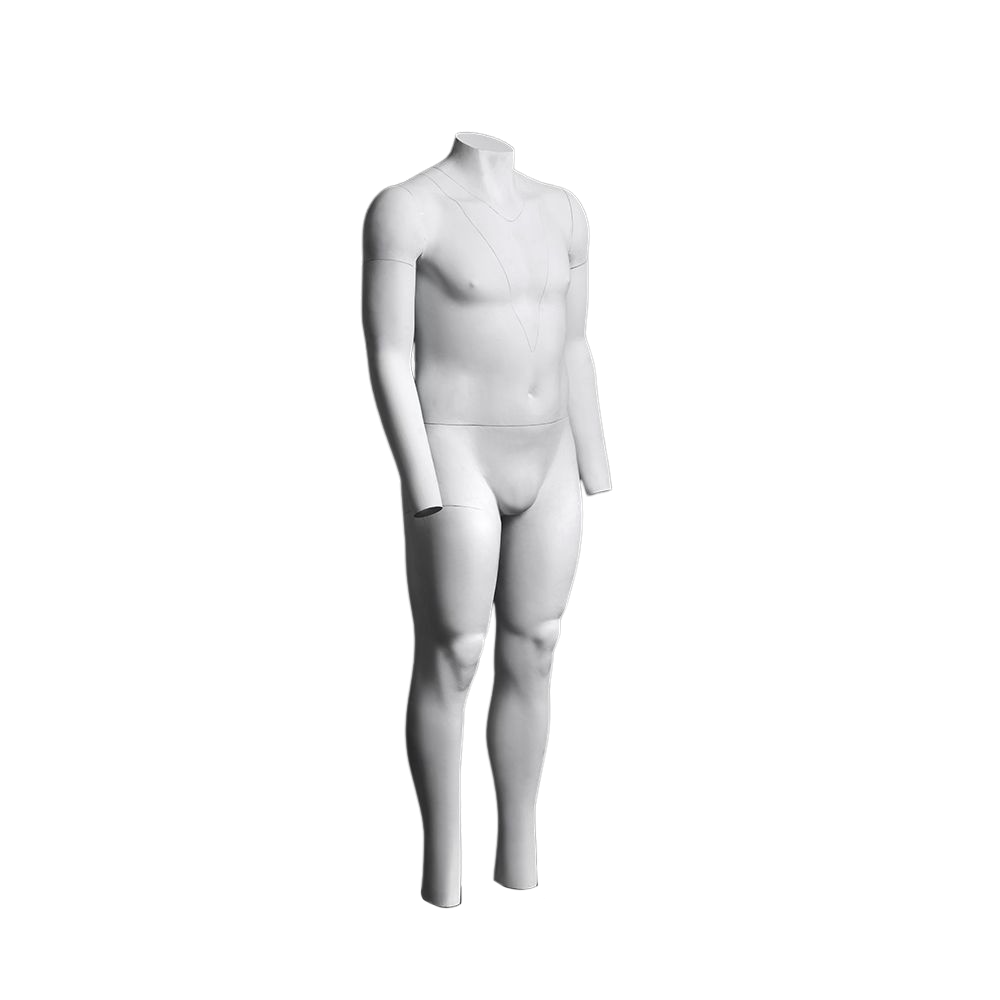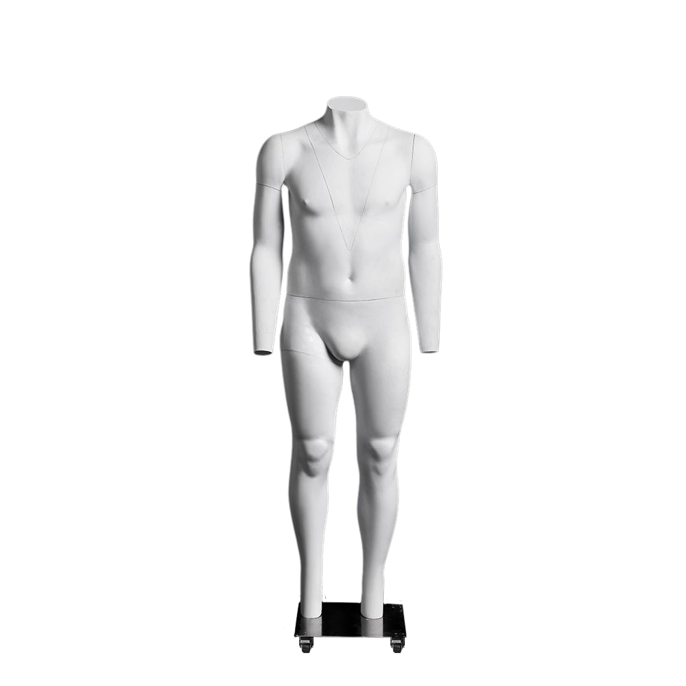 The GH15 invisible ghost male mannequin is a European, plus-size model with a separable torso and legs. It features removable neck, chest, shoulder, arm, and leg pieces, with magnetized dicing for easy assembly and disassembly. The construction is of high-quality FRP material, while its matte-white finish is ideal for eliminating unwanted glares and reflections.