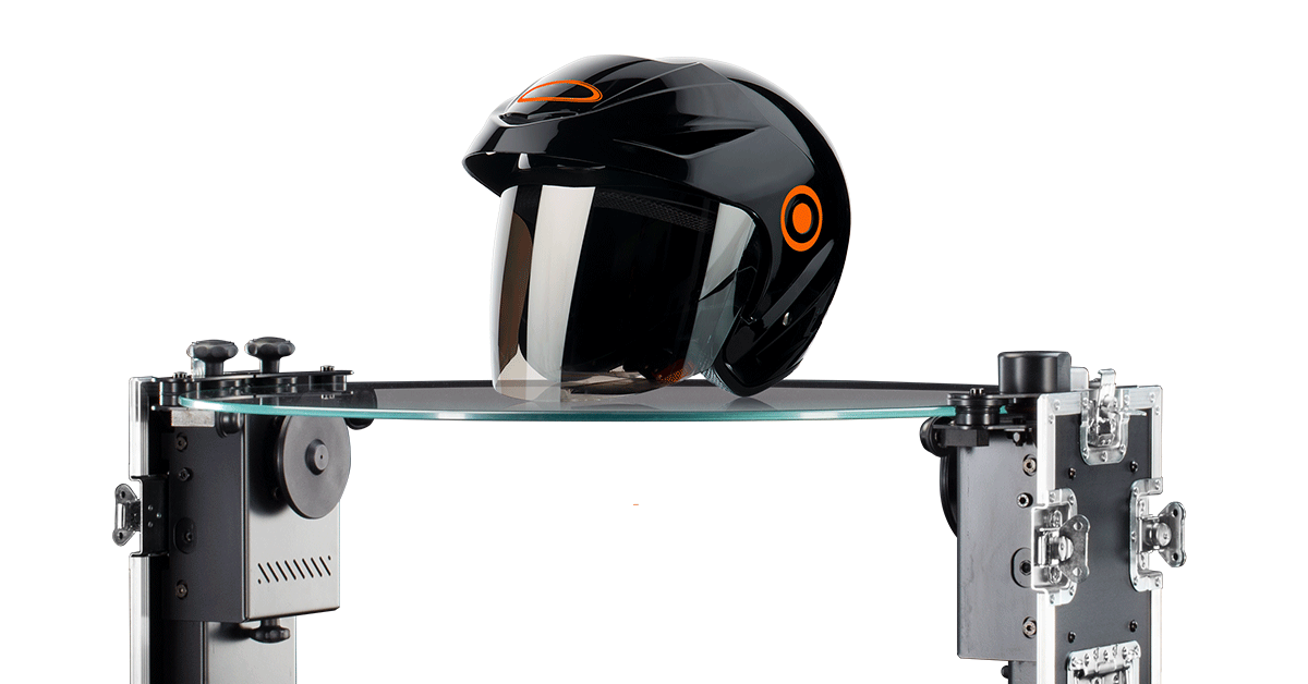 The optical glass plate of the turntable is 850mm in diameter, and can photograph objects weighing up to 20kg. It has a max width of 50cm, and a max height of 70cm. All of this without creating any visual shadows.
