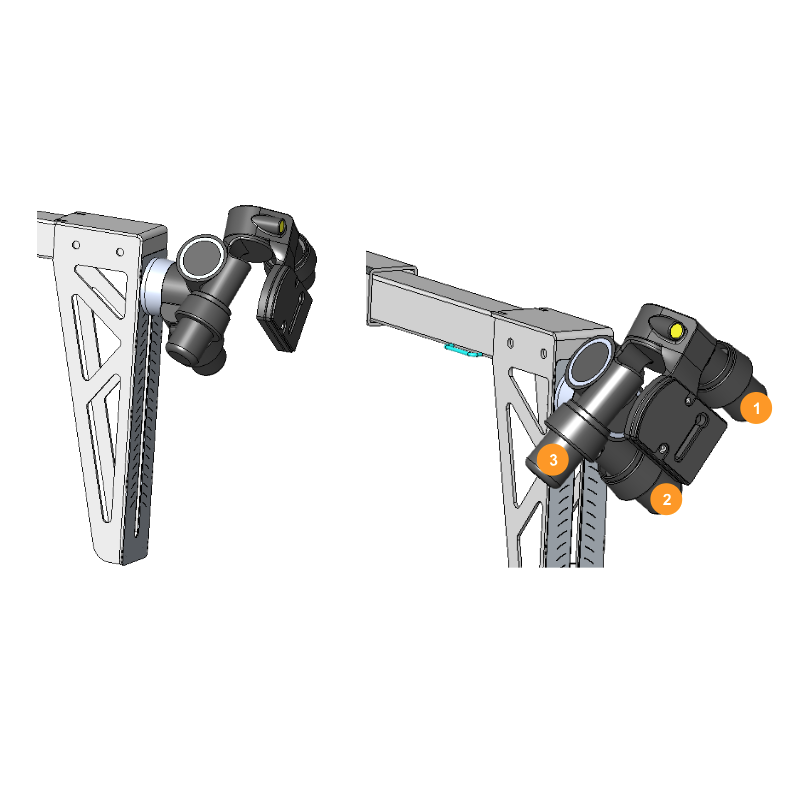 2.6. Attach the Manfrotto geared head by screwing it onto the shank, and then level it using the adjustable handles 1,2,3.