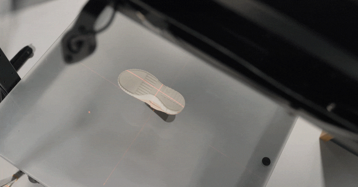 After importing your shot list, you simply scan a barcode of the shoe, and place it on the turntable of the Case_1300. Now, with our presets, the entire photoshoot happens automatically, and often takes no longer than a minute to apply your style guide.